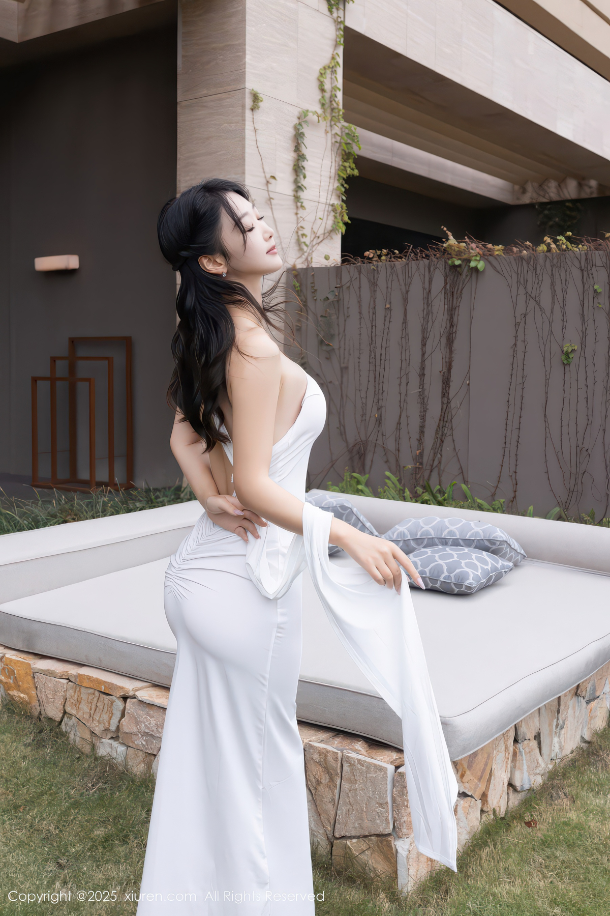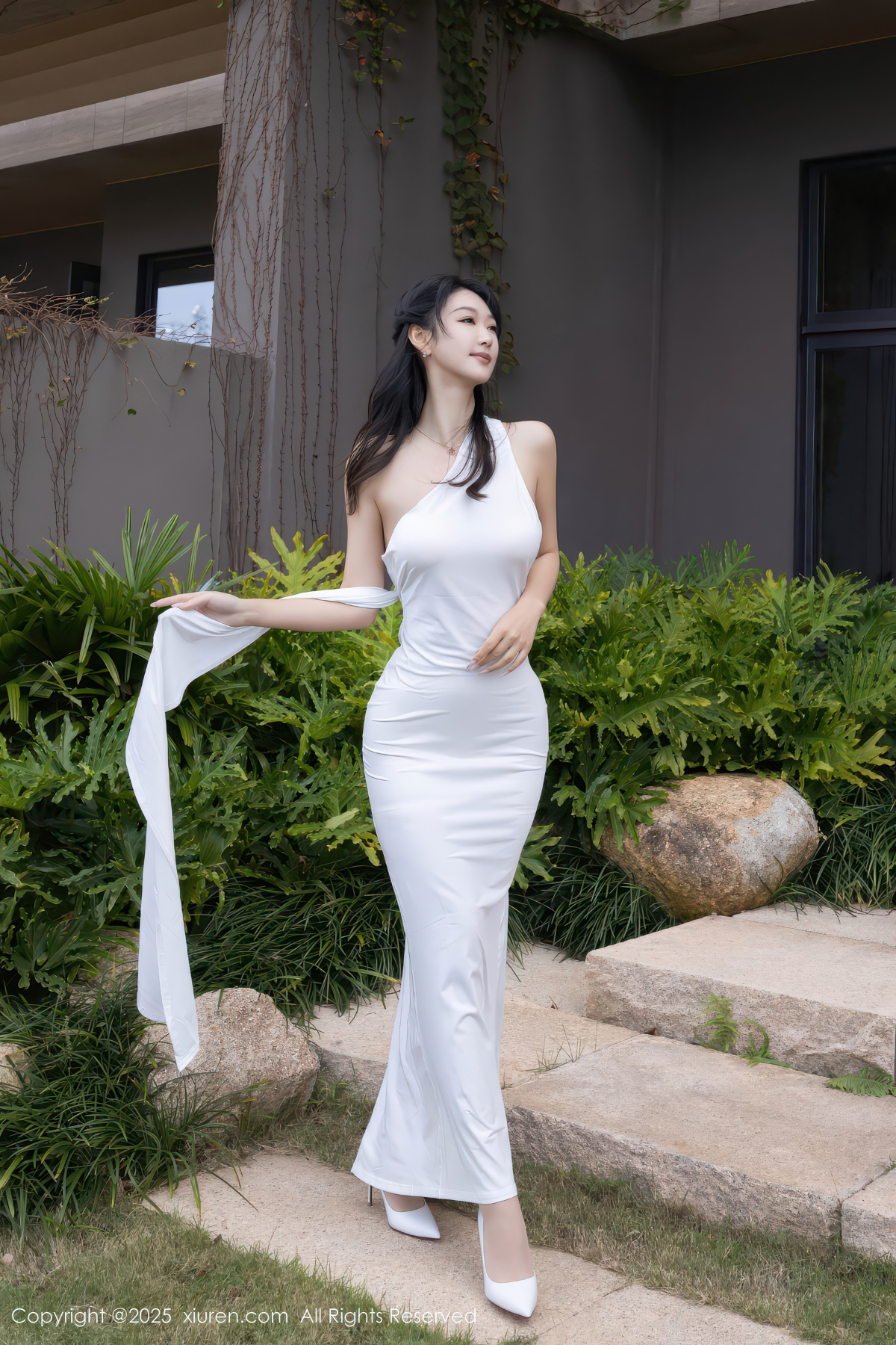 Model Anchi @Tang released a touching portrait photo, a stylish long white skirt with seductive flesh-colored hip-hop socks, a dreamy look that penetrates the soul with an elegant posture, and a soft body that is breathtaking.