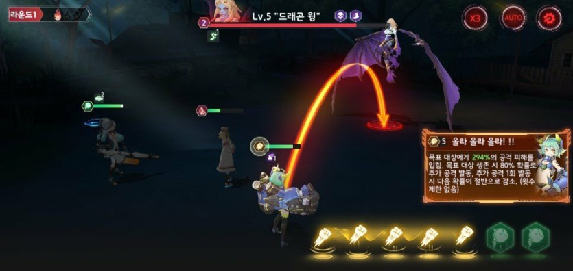 첫번째 스킬일시에는 100% 공격, 스킬을 모을수록 강력해집니다.